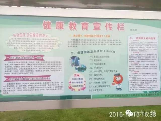 (四)為了突出創(chuàng)衛(wèi)這個(gè)詞語,我選用了健康教育宣傳欄和正在進(jìn)行對這個(gè)城市面貌修飾的工人,還有我們學(xué)校附近的街心花園新修的一個(gè)花圃。(崔風(fēng)琴 攝)
