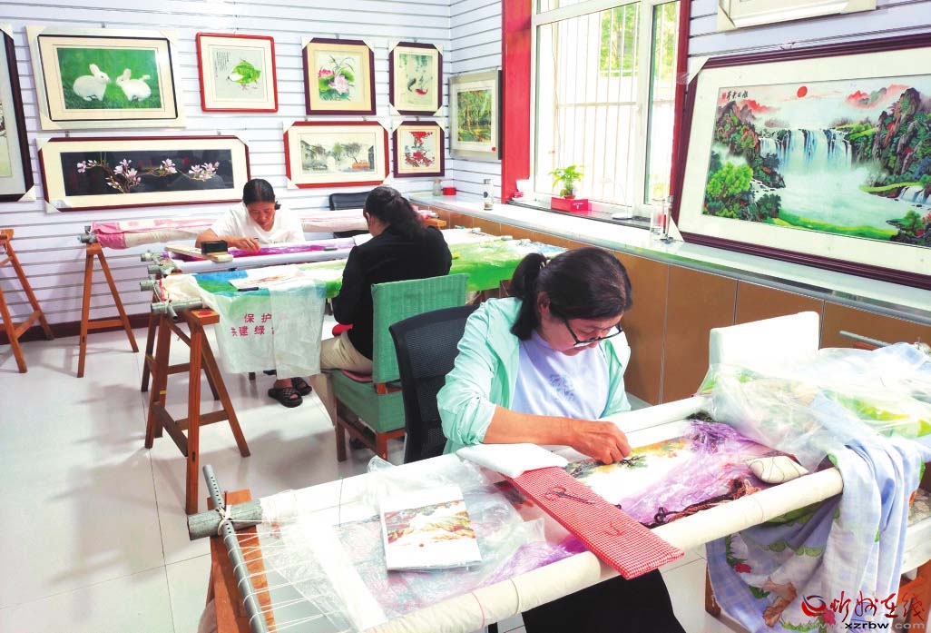 在靜樂縣鵝城鎮(zhèn)新時代文明實踐所,村民正在認真刺繡。 王鵬宇 攝