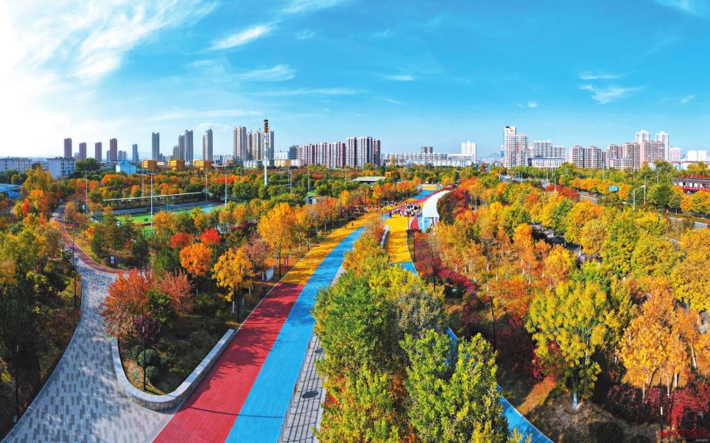 金秋十月,忻州城區(qū)體育公園宛如一幅色彩斑斕的油畫,為美麗的城市增添了迷人魅力。(