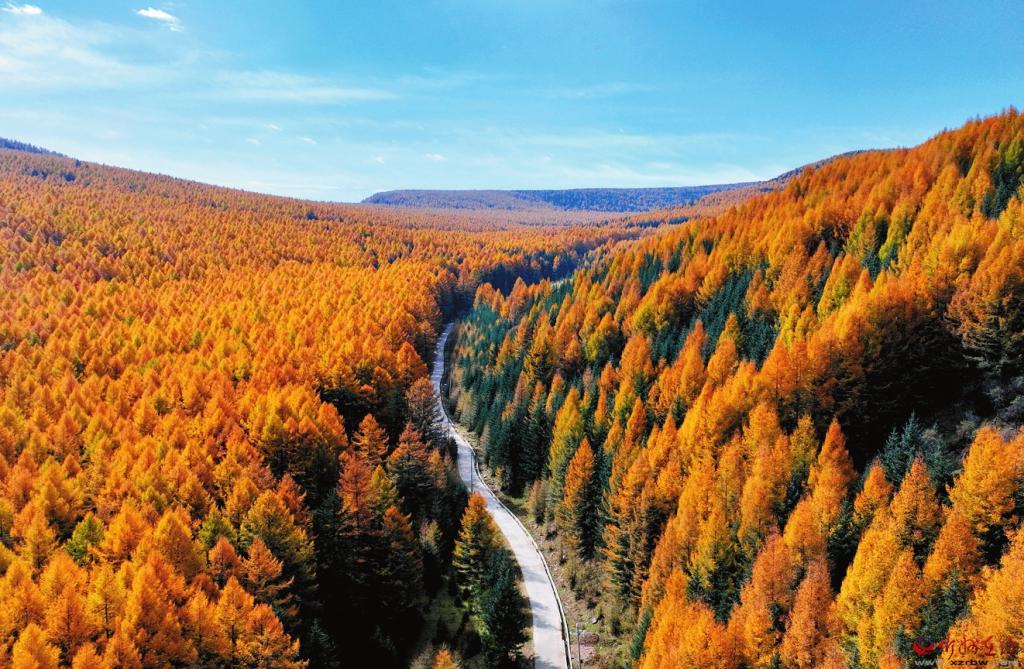 隨著氣溫逐漸降低,素有“北方的香格里拉”之稱的寧武蘆芽山景區(qū)層林盡染、疊翠流金,迎來了一年中最為色彩斑斕的時(shí)刻。從高空俯瞰,藍(lán)天之下,道路兩側(cè),森林密布,滿目金黃。各種林木交錯(cuò)分布,被秋風(fēng)漸次浸染,猶如一幅美不勝收的立體畫卷,絢爛而壯麗。 (吳光宇 劉 強(qiáng)攝)
