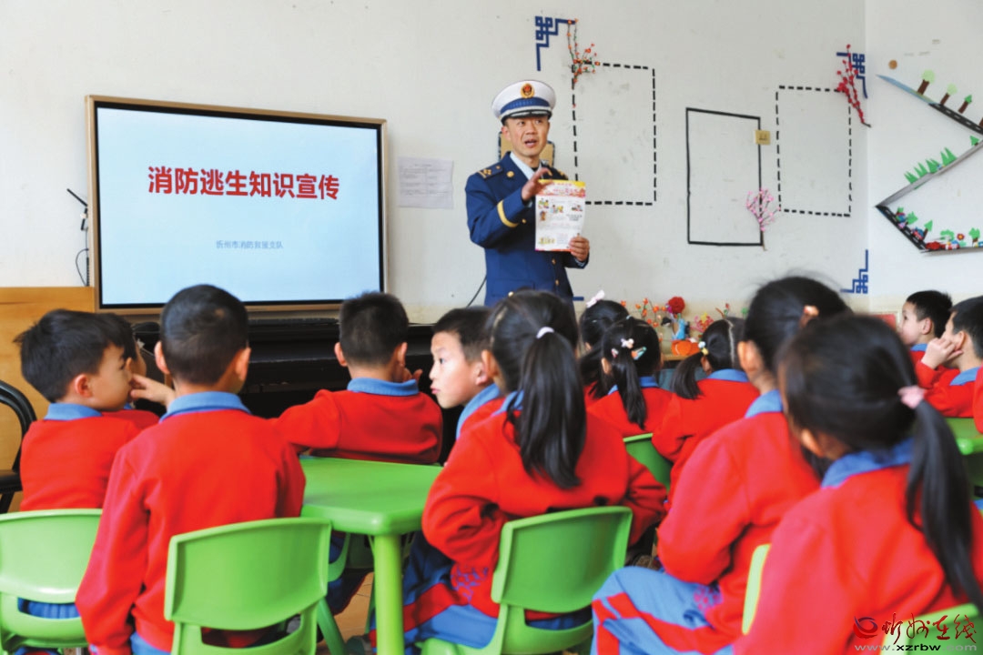 為進(jìn)一步做好校園消防安全工作,營造安全、穩(wěn)定、和諧的校園環(huán)境,近日,忻州市消防救援支隊(duì)走進(jìn)轄區(qū)康樂幼兒園,開展主題宣傳活動(dòng)?;顒?dòng)中,消防救援隊(duì)員寓教于樂,用通俗易懂的語言,為小朋友們講解火災(zāi)的危害和預(yù)防火災(zāi)的重要性,傳授火場(chǎng)如何逃生等消防基礎(chǔ)常識(shí),并實(shí)地演示了滅火器及各類消防器材操作使用方法,讓消防安全知識(shí)入腦入心。 (記者 張曉霞 攝影報(bào)道)
