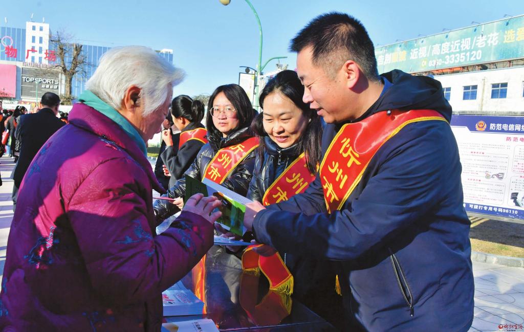 活動現(xiàn)場,工作人員向廣大市民發(fā)放宣傳資料,為大家普及法律知識,積極營造濃厚的法律學(xué)習(xí)氛圍。