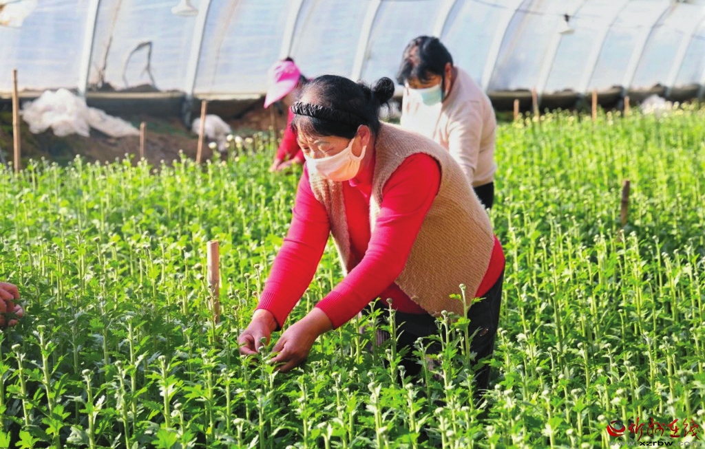 近日,在忻府區(qū)九原街道西馮城村的山西兮玥農(nóng)業(yè)開發(fā)有限公司菊花種植基地,大棚種植的菊花迎來了豐收。目前,該基地有9棟菊花大棚,占地面積約1.4萬平方米。這些菊花以觀賞菊為主,品種主要包括白善、金誠、優(yōu)香三個白菊品種和金菊、關(guān)玉兩個黃菊品種,畝產(chǎn)量約13萬枝。圖為工人穿梭在花田中采摘菊花。 (張 媛攝)