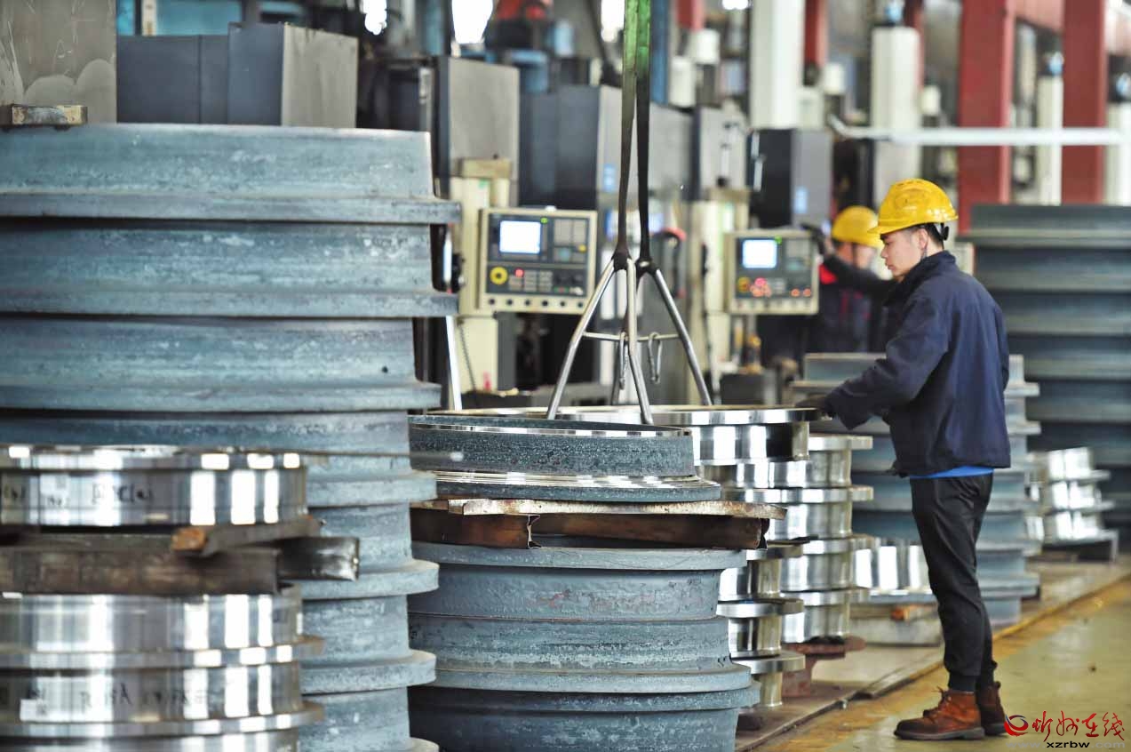 山西冠力法蘭有限公司包裝車(chē)間,工人們正在為外運(yùn)進(jìn)行裝貨。 張晉蘭攝