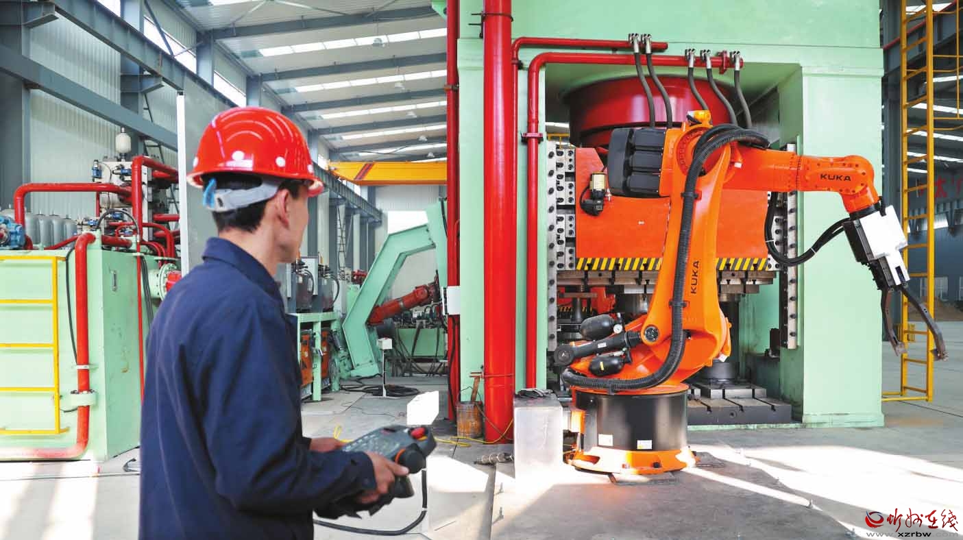 山西良品鍛造股份有限公司員工正在調(diào)試最新設(shè)備。 本報(bào)記者 陳勇升攝