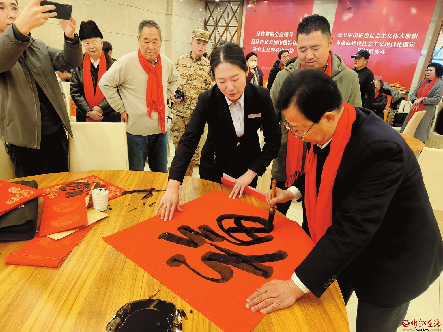 在2025年春節(jié)即將到來(lái)之際,由山西大眾書(shū)畫(huà)院、山西中華文化促進(jìn)會(huì)、山西省書(shū)法家協(xié)會(huì)、山西省美術(shù)家協(xié)會(huì)、山西中國(guó)畫(huà)學(xué)會(huì)、山西老年書(shū)畫(huà)家協(xié)會(huì)、山西武警某部、書(shū)畫(huà)頻道山西工作中心、晉善晉美控股集團(tuán)、山西省祁寓藻研究會(huì)、山西省鄉(xiāng)村振興聯(lián)合會(huì)共同舉辦的“開(kāi)創(chuàng)美好未來(lái)——2025軍民魚(yú)水情迎春書(shū)畫(huà)筆會(huì)”在山西省人大會(huì)議中心舉行。我市退休干部袁旺水等參加了創(chuàng)作交流。 (栗美霞 攝)