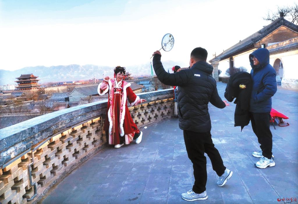 近日,忻州古城旅拍市場異?;鸨?,身著華麗古裝的游客在攝影師鏡頭前,留下精彩瞬間。圖為攝影師正在為游客示范拍照動作,指導他們擺出最佳姿勢。(宮清華攝)