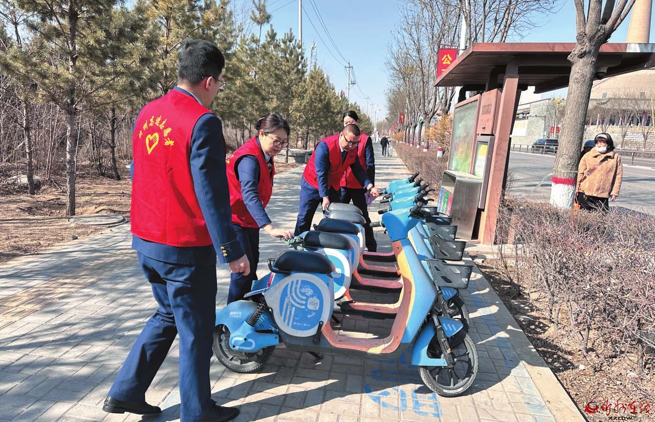 3月5日,山西交控忻州公司河曲收費(fèi)站的工作人員身著紅馬甲化身志愿者,在街頭認(rèn)真整理共享單車(chē),細(xì)致清掃路邊垃圾,精心擦拭公共設(shè)施,他們用行動(dòng)讓雷鋒精神在新時(shí)代熠熠生輝。(劉冬梅 劉曉榮攝影報(bào)道)