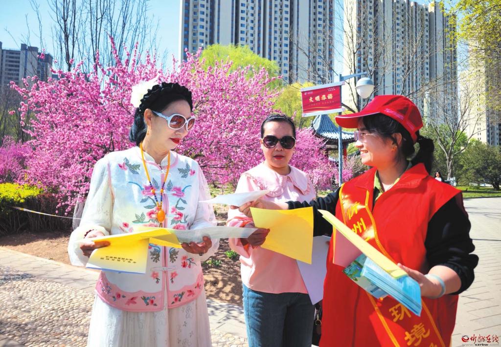 4月15日,忻州市生態(tài)環(huán)境局組織人員在市人民公園開展“4·15”全民國家安全教育日生態(tài)安全宣傳教育活動?;顒油ㄟ^設(shè)置咨詢臺、懸掛橫幅、發(fā)放宣傳資料等方式,向過往市民宣傳國家安全、生態(tài)安全等相關(guān)知識。(記者張存良攝)