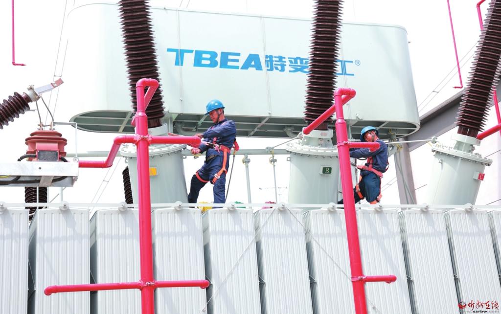 7月1日,隨著兩臺主變壓器并網運行,位于代縣聶營鎮(zhèn)西高泉村的220千伏顯旺變電站正式投運。圖為技術人員進行投運前的最后檢驗。 (