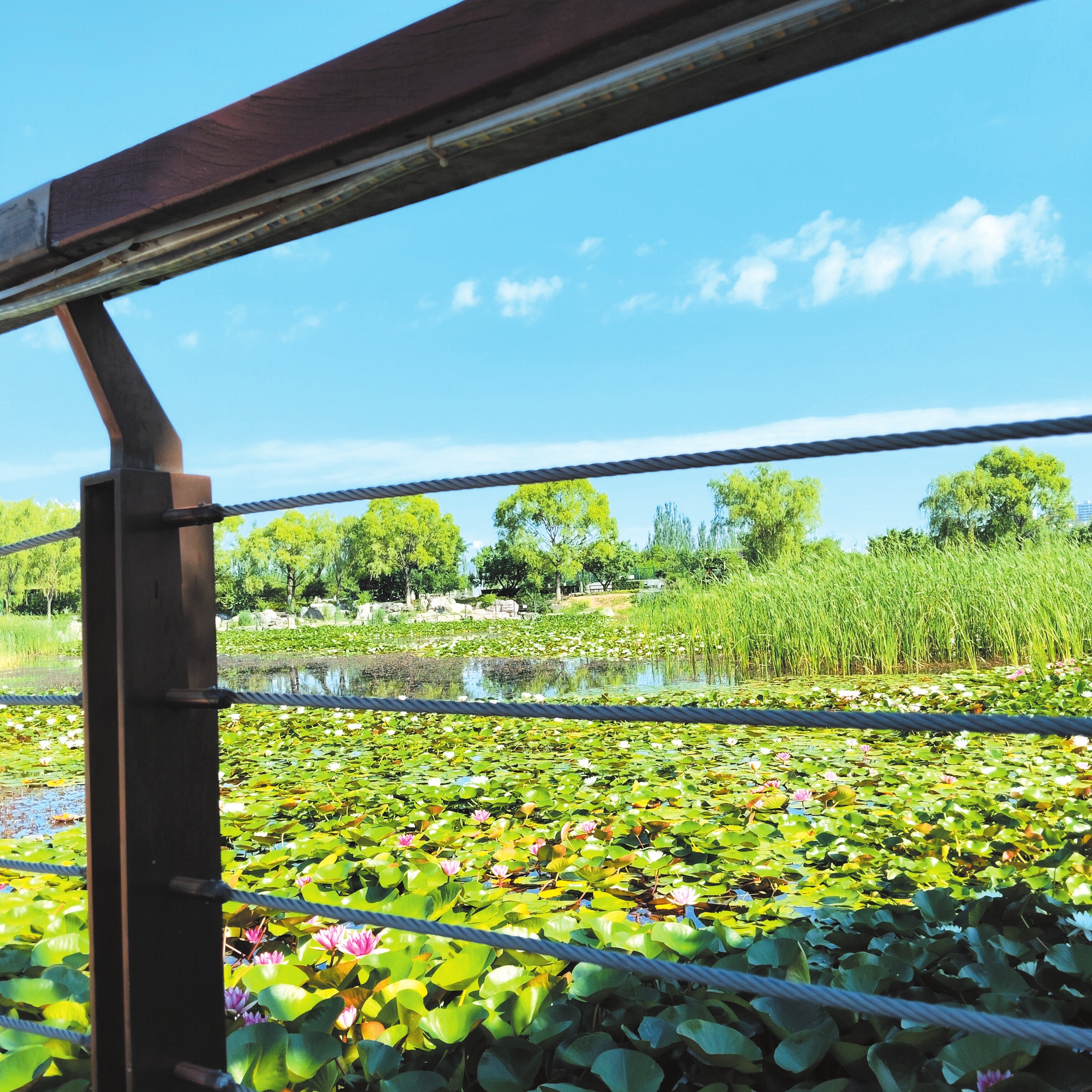 晨霧未散時,“綠云”先漫過了河岸——層層疊疊的荷葉浮在水面,像被風(fēng)吹過的綢緞,葉尖凝著的荷露,是天空落進人間的碎鉆。粉白的荷從“綠云”里探出頭,半開的像未寫完的詩箋,盛放的似被陽光吻過的笑靨,連風(fēng)掠過時都輕了三分,怕驚碎這池溫柔。
