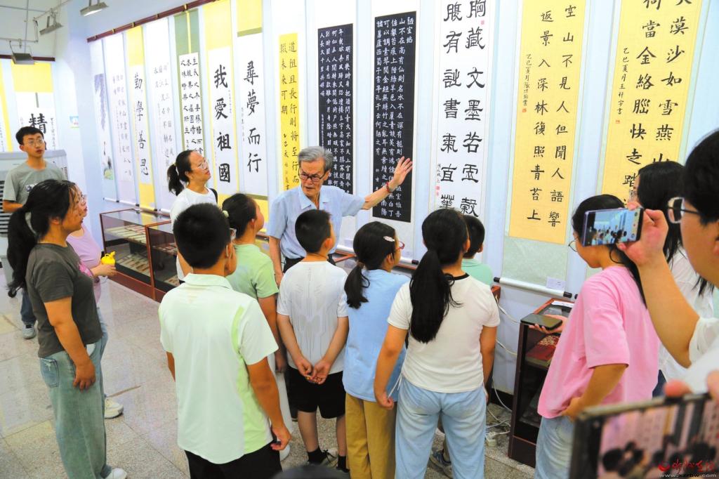 展廳里墨香四溢、丹青煥彩,一幅幅作品吸引著參觀者駐足欣賞。剛上初中的邵琢雯站在自己的作品《世外桃源》前,難掩自豪地說:“我想通過畫筆展現(xiàn)家鄉(xiāng)的懸空村美景。這幅畫我畫了整整兩個月,運用了傳統(tǒng)山水畫技法,從構思到落筆改了好幾次。繪畫讓我更深刻地感受到家鄉(xiāng)山水的魅力。”
