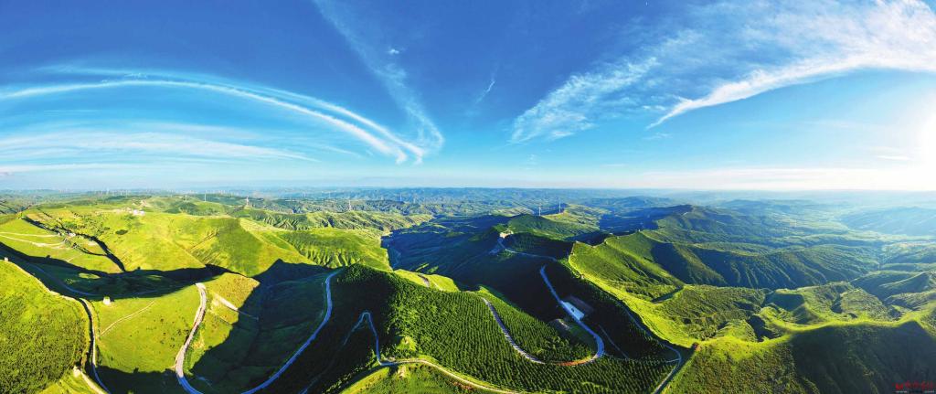 蒼翠欲滴的綠意,如潑墨般點(diǎn)染著黃土高原的溝壑梁峁,交織成一片生機(jī)盎然的“生態(tài)絨毯”。蜿蜒起伏的古長城和玉帶般優(yōu)雅伸展的長城一號旅游公路,形成一幅美不勝收的圖景。圖為長城一號旅游公路偏關(guān)段。(記者 馮曉磊攝)