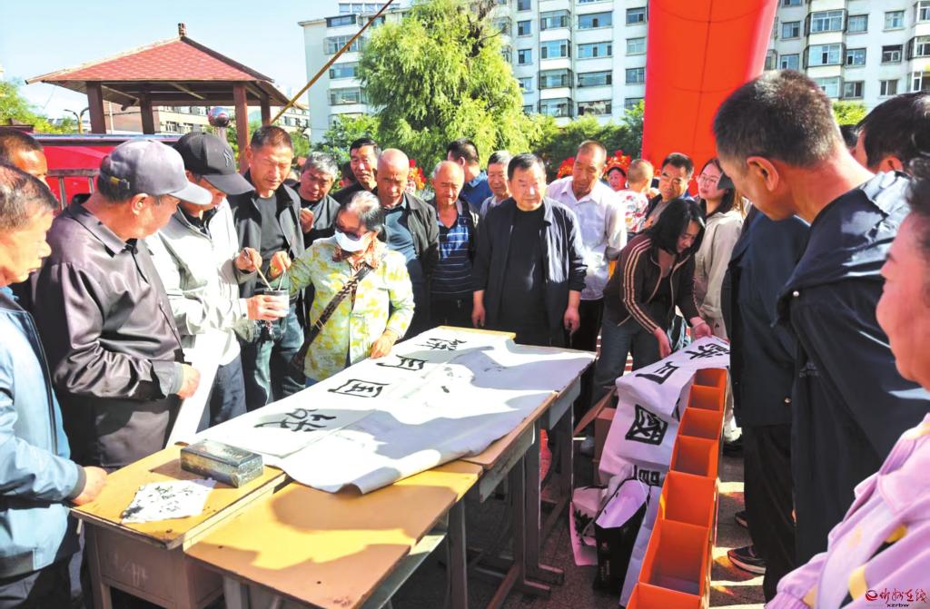 書法愛好者們揮毫潑墨,一幅幅飽含深情、寓意美好的作品躍然紙上,引得過往群眾駐足欣賞。該活動(dòng)不僅豐富了群眾的精神文化生活,還營造出濃厚的節(jié)日文化氛圍。(歐麗霞攝)