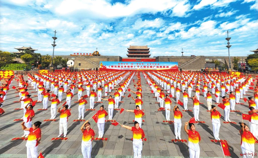 9月26日,來自全市14個(gè)縣(市、區(qū))代表隊(duì)的近千名舞者齊聚忻州古城,伴隨著配樂《鞭花舞出幸福歌》的激揚(yáng)曲調(diào),共同演繹霸王鞭廣場舞,并齊聲合唱《歌唱祖國》,為即將到來的國慶節(jié)獻(xiàn)禮。活動(dòng)中,演員們整齊劃一的動(dòng)作、昂揚(yáng)向上的精神風(fēng)貌,生動(dòng)展現(xiàn)了對(duì)美好生活的向往,得到了廣泛好評(píng)。常麗琴攝