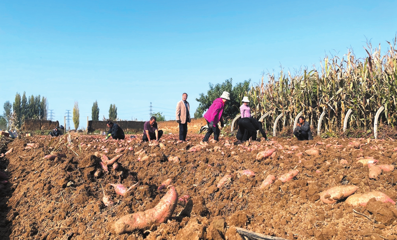 代縣東章村村民起收紅薯。劉 睿攝