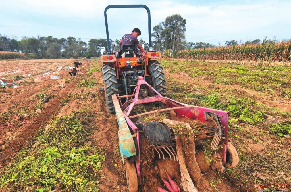 10月13日,忻府區(qū)北合索村村民在收獲紅薯。該村引進新品種,增施有機肥,加強科學管理,提高紅薯產(chǎn)量和品質(zhì),帶動農(nóng)民增收。 (記者 劉紀森攝