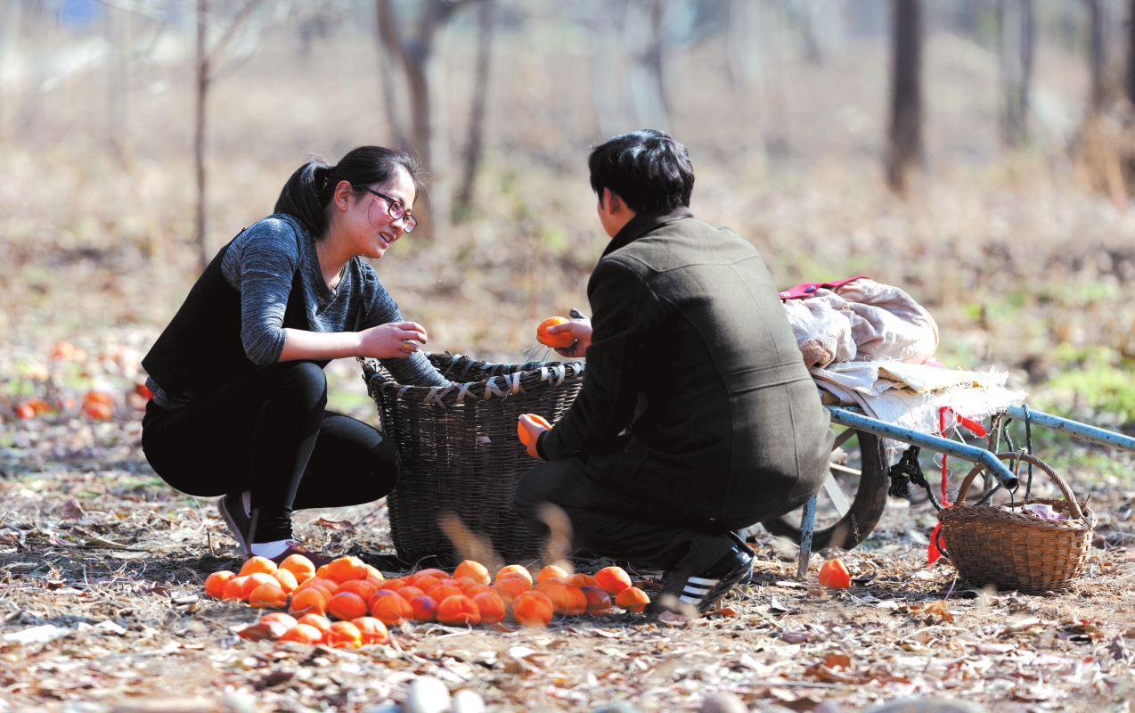 地頭那畔,景象便不同了。一對年輕的夫婦,正手腳利落地采摘、分揀柿子。竹籃里,橙紅的果實(shí)漸漸堆成小山。他們時(shí)而低語,聲音輕得像風(fēng)拂過枝梢,說的或許是今年柿子的成色,盤算著能賣個(gè)好價(jià)錢;或許是在憧憬,等這筆錢到手,該給娃添置些什么。他們額上有細(xì)密的汗珠,眉宇間有勞作后的倦色,但那份倦色底下,卻藏不住一股子蓬勃向上的勁兒,一種屬于明天的、清亮亮的盼頭。