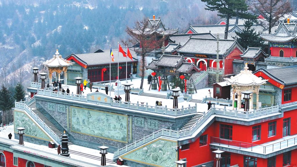 五臺(tái)山的雪,帶著空靈的寧靜。紅墻黛瓦覆上皚皚白雪,似給千年古剎披上素凈袈裟。古松挺立,枝椏掛滿雪凇,晨鐘響起時(shí),雪沫從枝頭簌簌落下,與香火的青煙交織,恍若仙境。