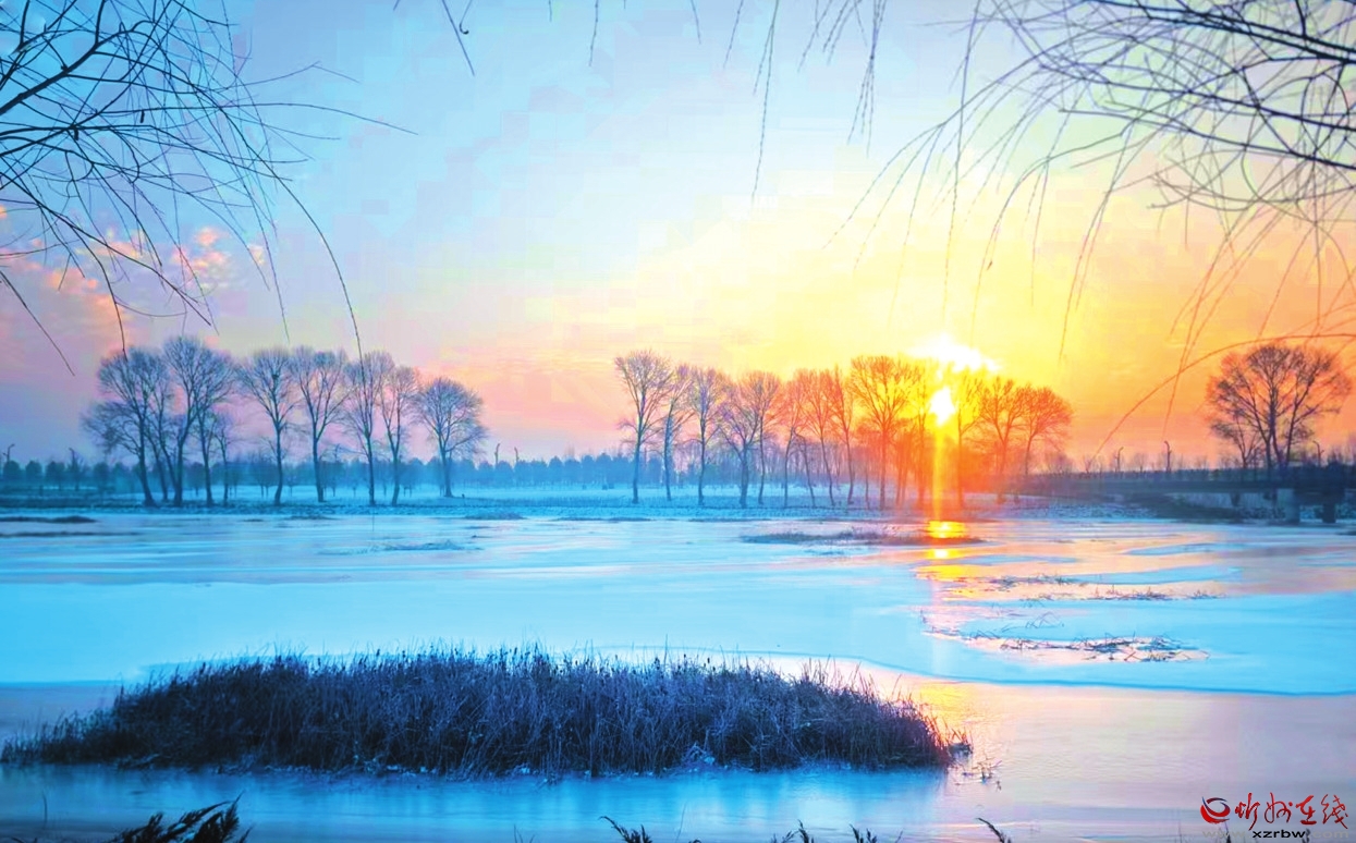 牧馬河公園的雪,則是城市里的小確幸。柳樹的枝條裹著雪,像銀條般垂落。湖面結(jié)著薄冰,倒映著岸邊的雪樹,一派祥和景象。老人們?cè)谘┖蟮男缴仙⒉?,孩子們追跑打鬧,堆起憨態(tài)可掬的雪人,偶爾傳來的歡笑聲,讓整個(gè)公園都充滿了生機(jī)。