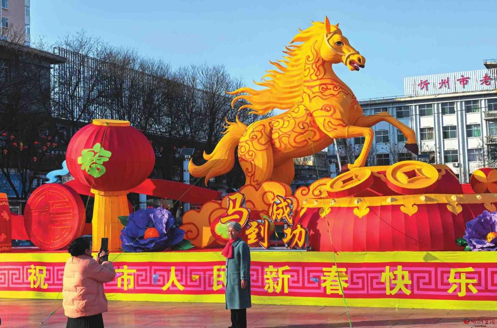 馬年春節(jié)的腳步越來越近了,忻州城區(qū)張燈結(jié)彩,處處洋溢著節(jié)日的喜慶氣氛。圖為市民在城區(qū)日月廣場(chǎng)與馬年迎春花燈合影。(記者張存良攝)
