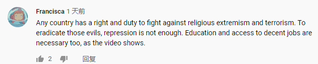 “任何國家都有權(quán)利和義務(wù)打擊宗教極端主義和恐怖主義。要根除這些邪惡……教育和獲得體面工作的機(jī)會也是必要的。”近日,一名海外網(wǎng)友Francisca在看完中央廣播電視總臺旗下CGTN播出的《巍巍天山——中國新疆反恐記憶》紀(jì)錄片后這樣評價。