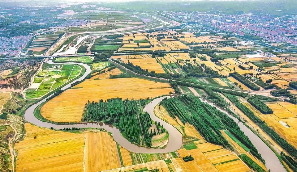 汾河稷山段彎曲的河道似舞者的飄帶飛舞在河?xùn)|大地。薛俊攝