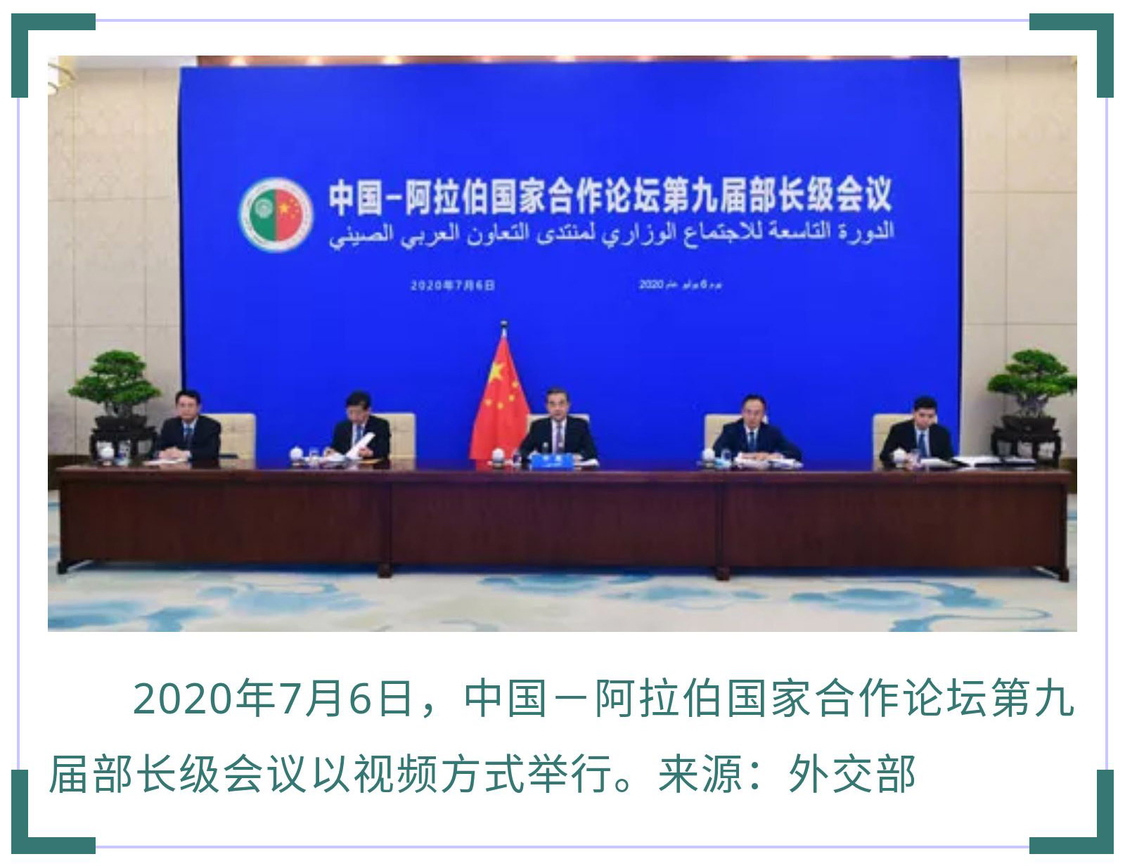 7月6日,中國-阿拉伯國家合作論壇第九屆部長級會議以視頻連線方式舉行。國家主席習近平在賀信中強調,“當前形勢下,中阿雙方比以往任何時候都更需要加強合作、共克時艱、攜手前行。”