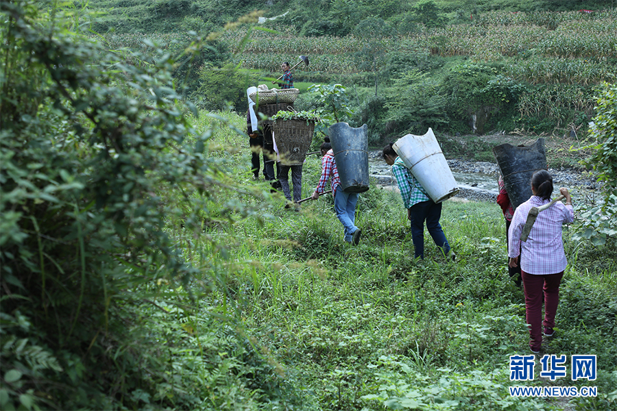 “山嫂”們勞作途中。新華網(wǎng)發(fā)