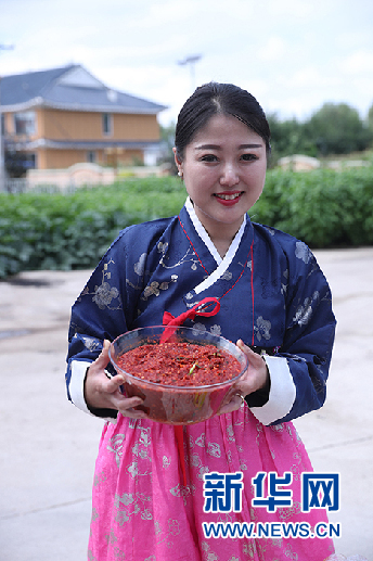 “明花辣白菜”制作者李貞淑是遼寧開(kāi)源人,2011年嫁到阿榮旗新發(fā)鄉(xiāng)東光村。她的婆婆鄭明花經(jīng)營(yíng)一家營(yíng)業(yè)面積1400平方米,員工20人的朝鮮族特色美食餐廳,在致富同時(shí)帶動(dòng)了當(dāng)?shù)芈糜螛I(yè)發(fā)展。在婆婆鄭明花指導(dǎo)下,李貞淑學(xué)習(xí)了朝鮮族美食傳統(tǒng)制作工藝,成為阿榮旗非物質(zhì)文化遺產(chǎn)傳承人。