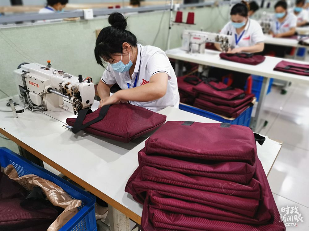 △紅亮箱包有限公司預(yù)計(jì)年產(chǎn)箱包100萬(wàn)只。(總臺(tái)央視記者邢彬拍攝)
