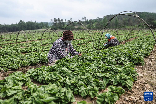 5月14日,在遼寧省撫順市新賓滿族自治縣,一家生產(chǎn)遼細辛企業(yè)的工作人員在種植基地進行日常維護工作。(新華社記者 潘昱龍 攝)