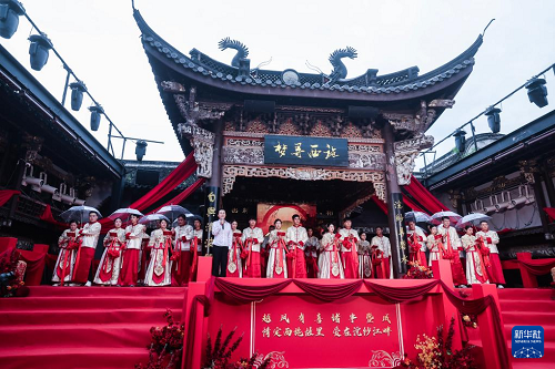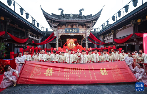 5月20日,18對(duì)新人在浙江省諸暨市西施故里景區(qū)內(nèi)參加以“越風(fēng)有喜·諸事暨成——情定西施故里 愛在浣紗江畔”為主題的集體婚禮。本次集體婚禮旨在倡導(dǎo)文明簡約的婚嫁理念,通過精心設(shè)計(jì)的集體婚禮儀式,為新人打造既莊重又溫馨的婚禮體驗(yàn),既減輕經(jīng)濟(jì)負(fù)擔(dān)、又傳承美好家風(fēng),倡導(dǎo)婚俗改革文明新風(fēng)尚。