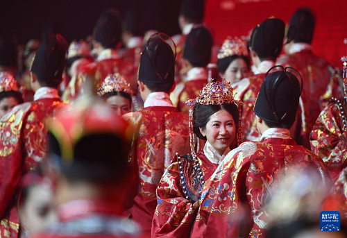 5月21日,新人們在集體婚禮儀式上。(新華社記者 趙子碩 攝)