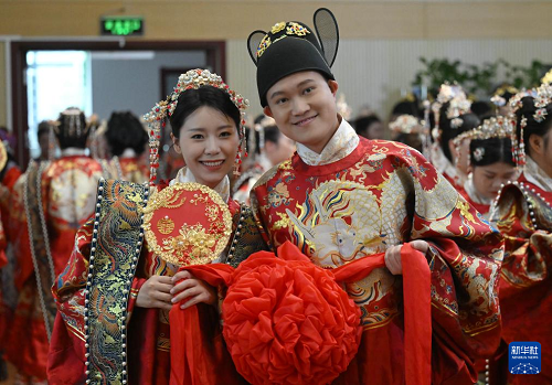 5月21日,中鐵建大橋局在天津為來自建設(shè)一線的職工舉辦以“緣聚鐵建,情定橋家”為主題的中式集體婚禮。46對新人在親朋好友的見證下完成拜天地、結(jié)發(fā)禮、合巹禮等環(huán)節(jié),走入婚姻的殿堂。