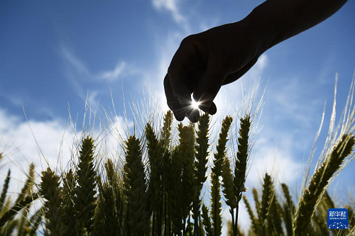 5月21日,農(nóng)戶在云南省麗江市玉龍納西族自治縣黃山街道的麥田里查看小麥長(zhǎng)勢(shì)。(新華社發(fā) 趙慶祖 攝)