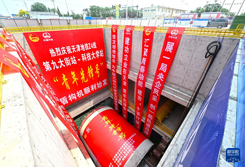 這是5月26日拍攝的天津軌道交通Z4線“青年先鋒號”盾構(gòu)機始發(fā)作業(yè)現(xiàn)場。(新華社記者 趙子碩 攝)