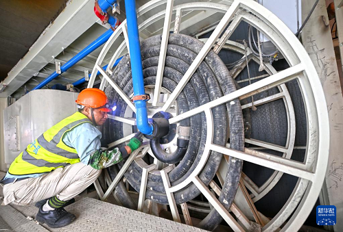 5月26日,施工人員在“青年先鋒號”盾構(gòu)機始發(fā)前檢查設(shè)備。(新華社記者 趙子碩 攝)