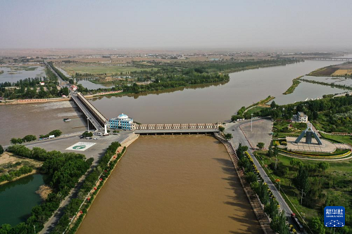 這是5月28日拍攝的位于巴彥淖爾市磴口縣的三盛公水利樞紐(無人機照片)。(新華社記者 李志鵬 攝)