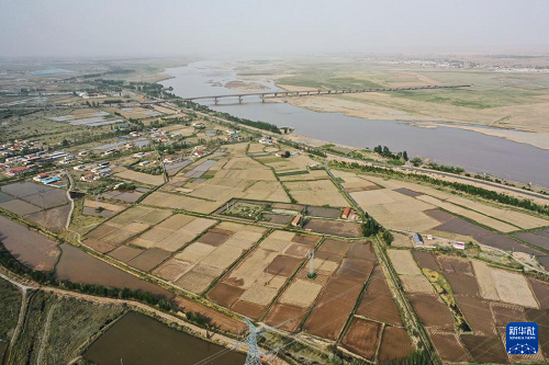 這是5月28日拍攝的巴彥淖爾市磴口縣境內的農田(無人機照片)。(新華社記者 李志鵬 攝)