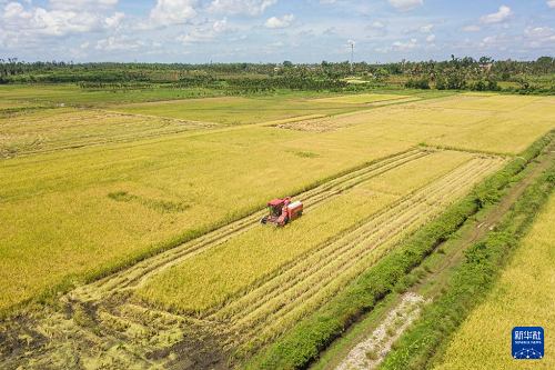 近日,海南省??谑协偵絽^(qū)紅旗鎮(zhèn)墨橋村“瓊山福稻”迎來收獲季,農(nóng)民們趁著晴好天氣抓緊收割。