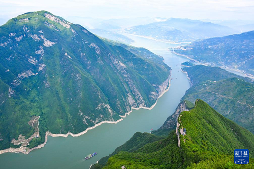 這是6月9日拍攝的瞿塘峽一帶景色(無人機(jī)照片)。(新華社記者 王全超 攝)