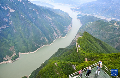 6月9日,游客在重慶奉節(jié)三峽之巔風(fēng)景區(qū)觀賞瞿塘峽景色。(新華社記者 王全超 攝)