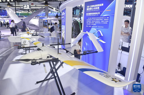 四川館展出的無人機(6月11日攝)。(新華社記者 劉坤 攝)