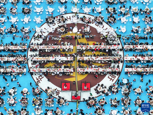 這是第25屆盱眙龍蝦節(jié)歡樂(lè)龍蝦宴現(xiàn)場(chǎng)(6月12日攝,無(wú)人機(jī)照片)。(新華社記者 李博 攝)