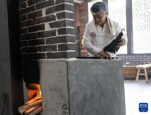 6月17日,玲瓏茶制作技藝省級代表性傳承人江秋桂在湖南省郴州市桂東縣清泉鎮(zhèn)銅鑼村制茶。(新華社發(fā) 蘭紅光 攝)