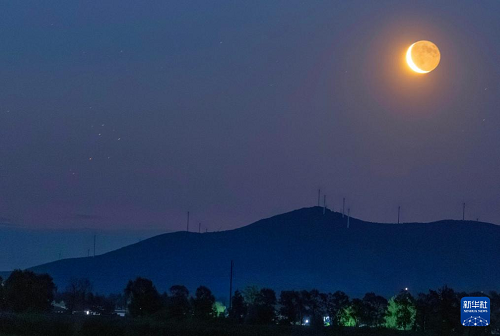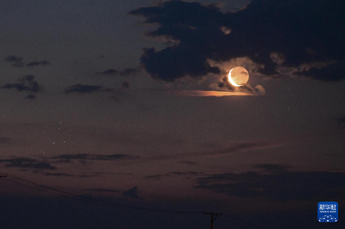 這是6月23日凌晨在黑龍江省佳木斯市富錦市硯山鎮(zhèn)拍攝的昴星團(tuán)伴月。(新華社發(fā) 曲玉寶 攝)