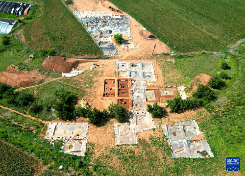 這是6月24日拍攝的東山頭遺址考古發(fā)掘現(xiàn)場(chǎng)(無人機(jī)照片)。(新華社發(fā) 河北省文物考古研究院供圖)