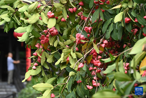 這是6月29日在南寧市古城路拍攝的結(jié)果的蓮霧樹。(新華社記者 陸波岸 攝)