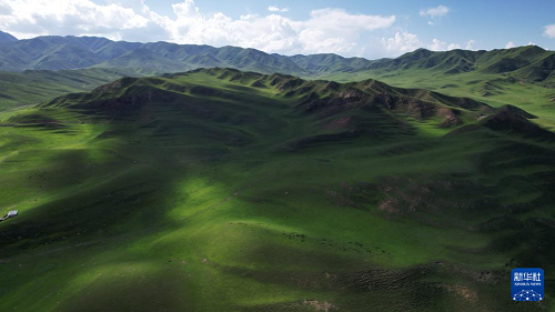 7月10日拍攝的桑科草原風(fēng)光(無人機(jī)照片)。(新華社記者 魚瀾 攝)